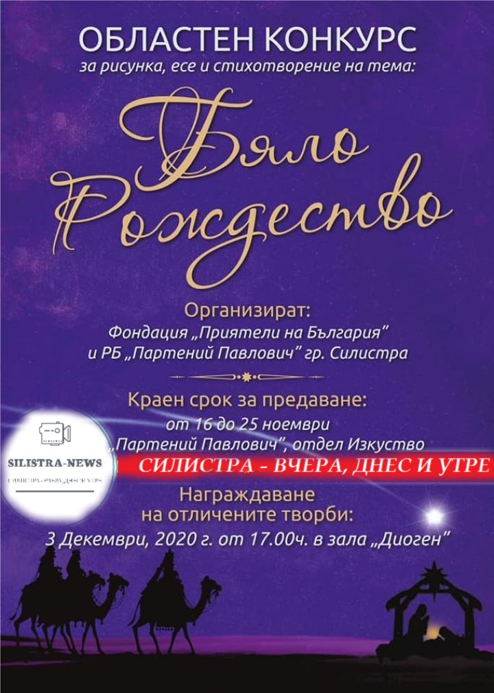 Сто двайсет и девет детски рисунки от областния конкурс „Бяло Рождество“ са подредени в изложба в Регионалната библиотека „Партений Павлович“ в Силистра. Четирийсет и шест от рисунките са отличени с награди. За конкурса за есе и стихотворение на същата тема са получени 50 литературни творби, които сега се оценяват.