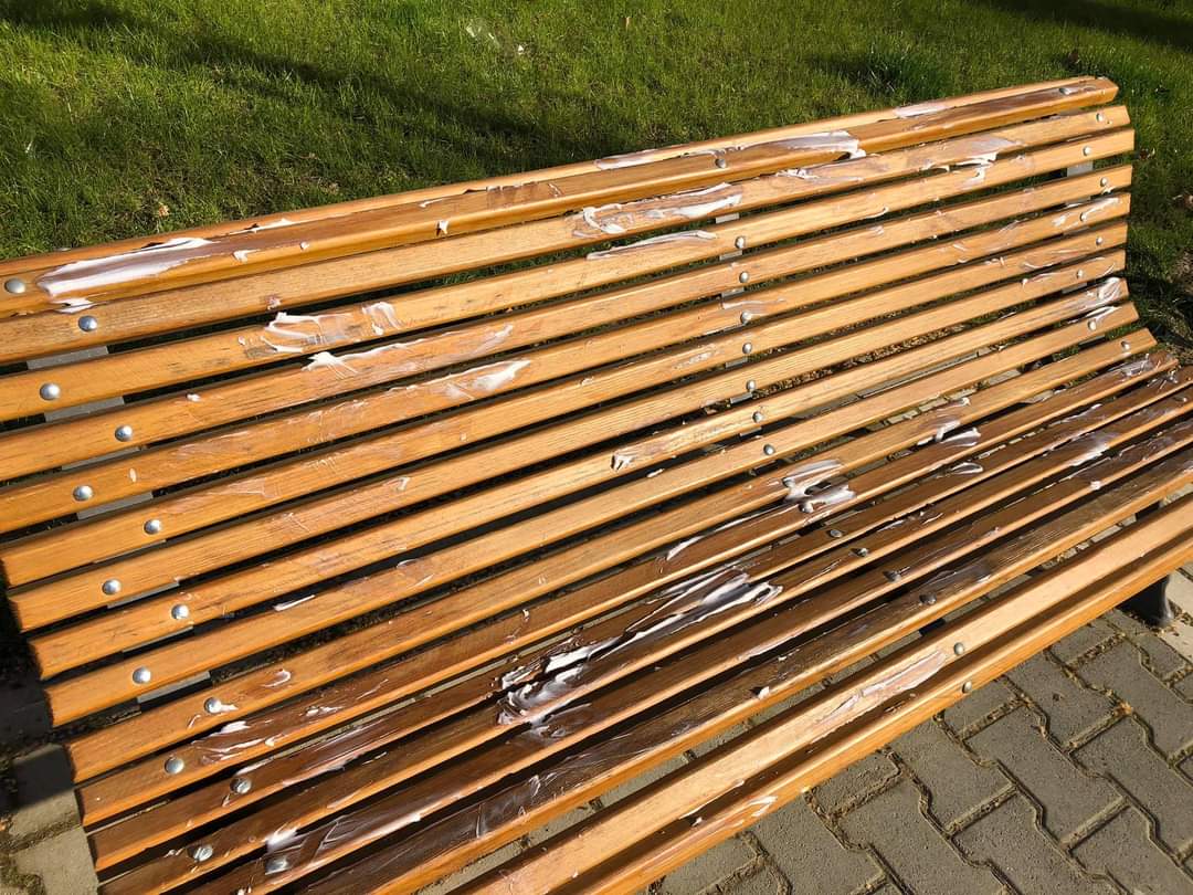 Жена маже със свинска мас пейките по една от главните улици на Силистра. За проблема, който не е отскоро споделят силистренци в социалните мрежи. Ето какво написа Симона Миланова в групата „Забелязано в Силистра“ :