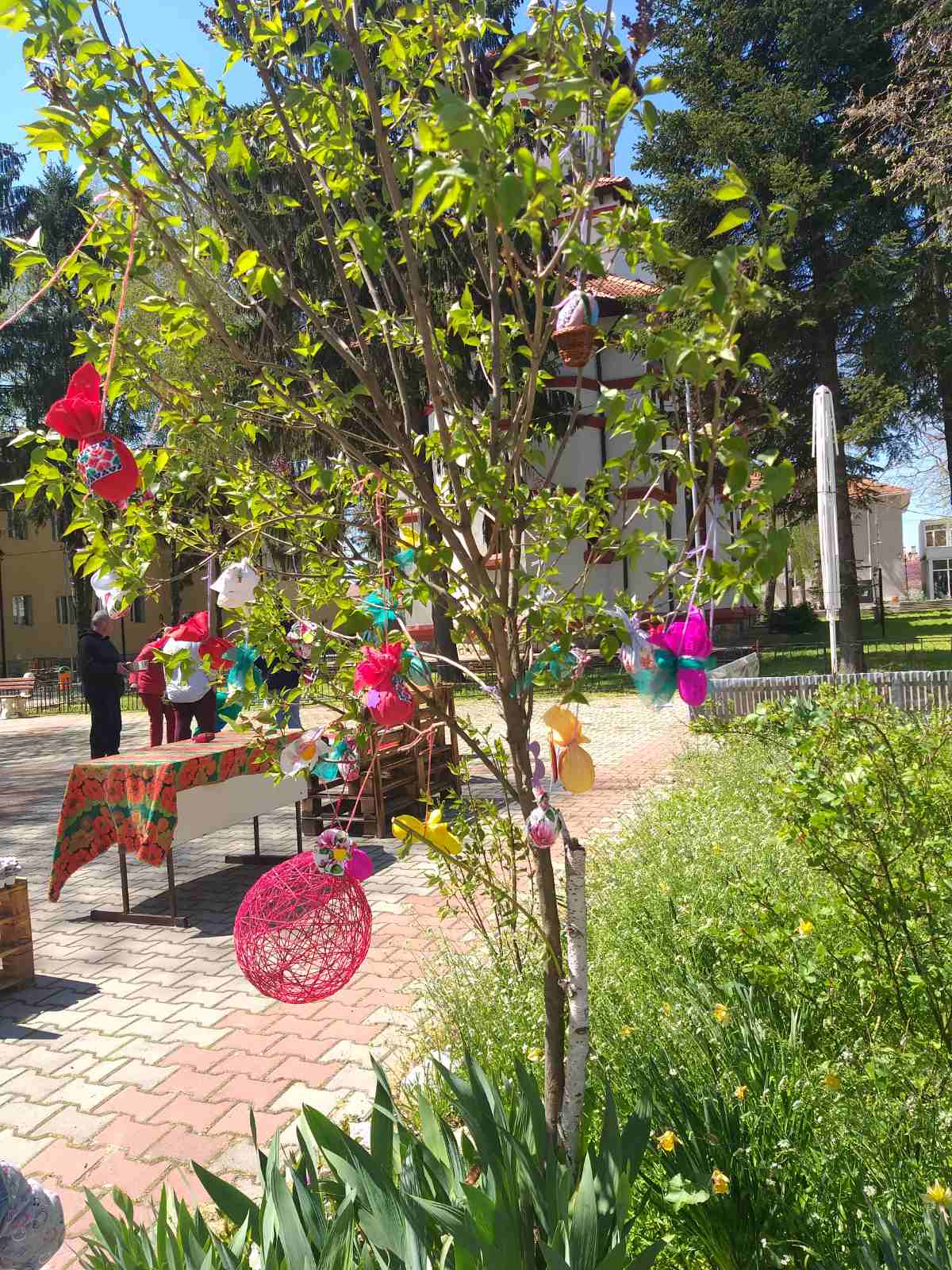 На 25 април децата, с помощта на членове на Читалището, отново твориха заедно. Великденско дръвче с цветя и яйца, изработени от плат, украсиха двора пред Читали-щето. Търсене на великденски съкровища, игри за баланс и концентрация, много музика бяха само част от програмата. Децата изработиха цветя, дрешки за яйчица, научиха що е шев и набор.