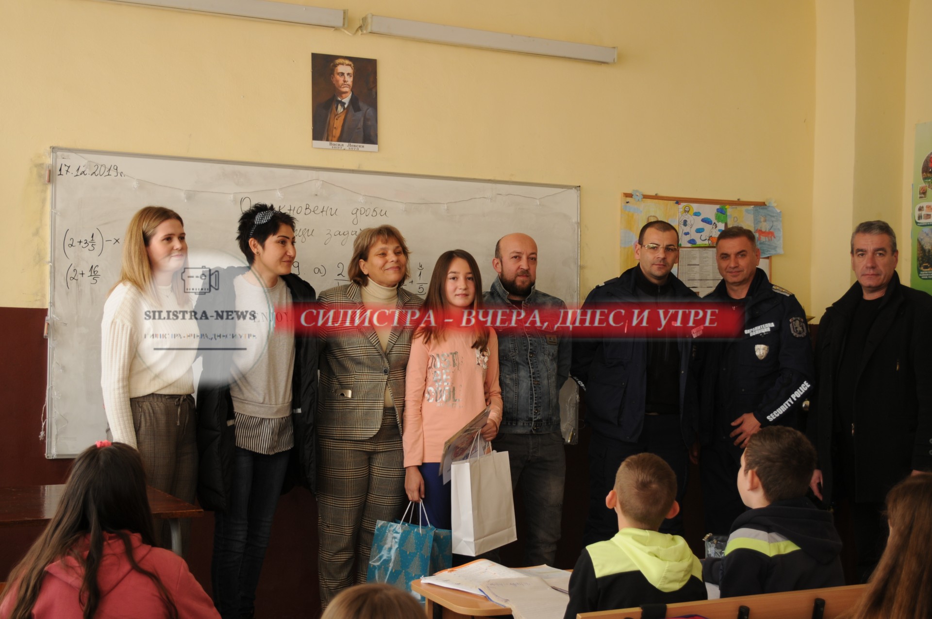 Днес директорът на ОДМВР-Силистра старши комисар Юлиян Караславов лично връчи грамота и награда на Алиса Тодорова, възпитаничка на СУ „Н.Й.Вапцаров“ в областния град, чиято творба е класирана на престижното трето място във втора възрастова категория. Той отбеляза старанието и таланта на Алиса и ѝ благодари, че достойно е представила областта ни в националното състезание. С подарък от общината към поздравите от свое име и от името на кмета д-р Юлиян Найденов се присъедини и г-жа Мария Харизанова, секретар на Местната комисия за борба с противообществените прояви на малолетни и непълнолетни. Директорът на училището г-н Калоян Нейков и инспекторът в Детска педагогическа стая Ирена Мърова също похвалиха момичето, пожелавайки му много бъдещи успехи. Грамота от името на директора на ОДМВР-Силистра получи и преподавателят по изобразително изкуство в СУ „Н.Й.Вапцаров“ г-н Димитър Златев в знак на благодарност за дългогодишния му принос за отличното представяне на ученици от училището в художествени конкурси, организирани от МВР.