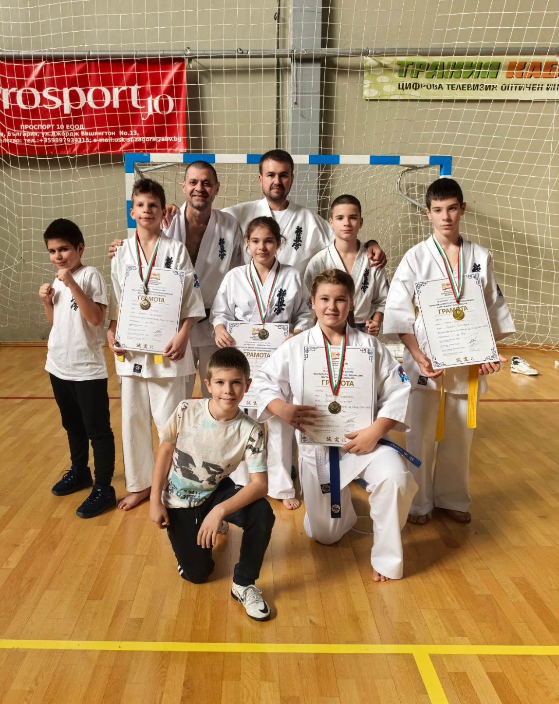 Един златен, два сребърни и един бронзов медал завоюваха състезателите на СК „Доджо“-Силистра на Държавното първенство по карате киокушин в Стара Загора днес. За пореден път каратеките на сенсей Костадин Костадинов се представиха перфектно, демонстрирайки желязна воля, дисциплина и желание за победа. В дълги и изморителни битки сред 198 участници от 29 клуба Иван Нарлев се окичи със златен медал, Даная Маринова и Йоана – Никол Христова завоюваха сребърни медали, а Калоян Ников бронзов медал! Адмирации за усилията и несломимия спортен дух!