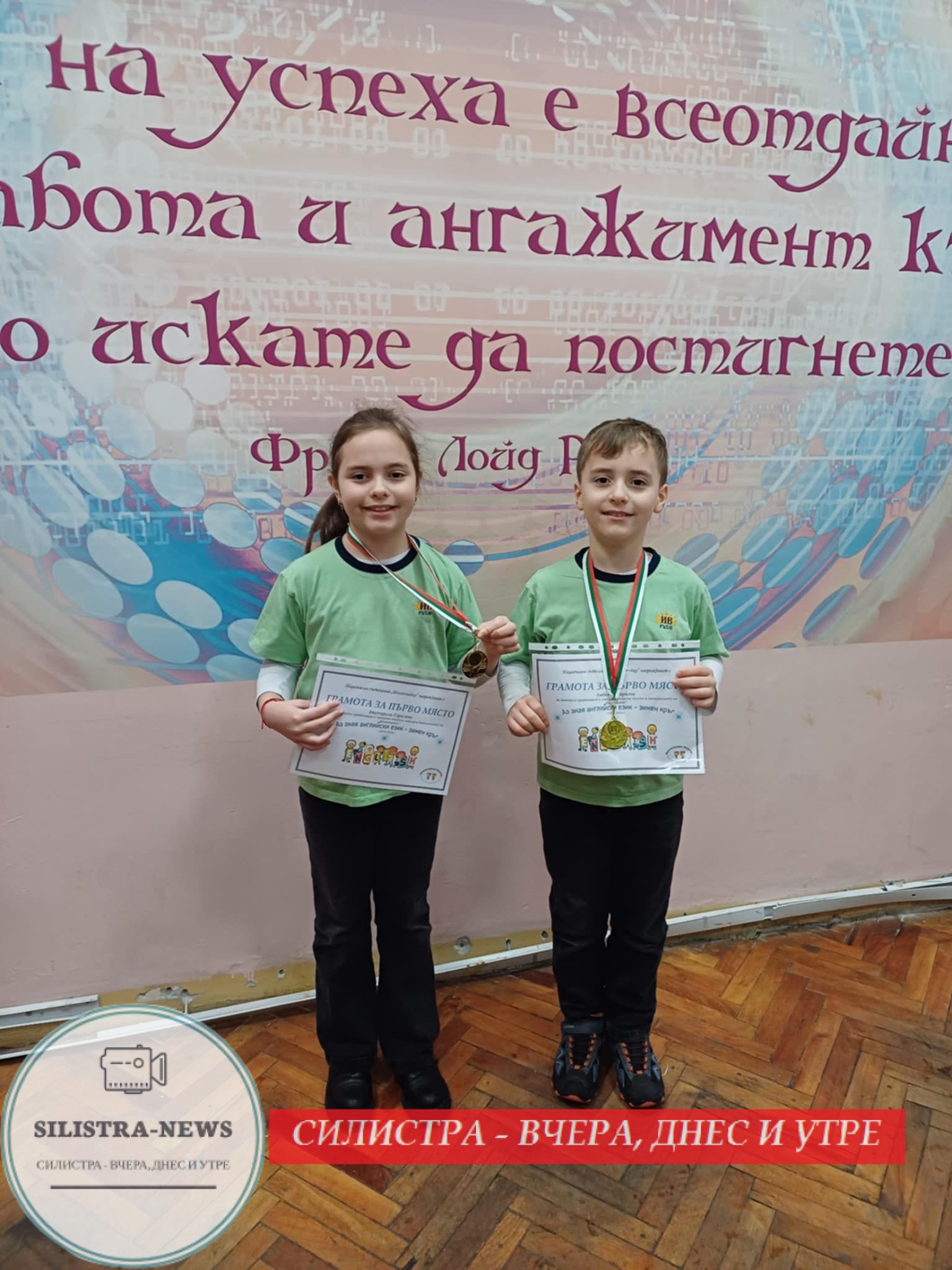 ПЪРВО МЯСТО И ЗЛАТЕН МЕДАЛ за Екатерина Горялова и Любомир Горялов от 2.б клас на ОУ „Иван Вазов“ – Силистра, за показани отлични знания в състезанието на „Многознайко“ – Аз зная английски език – зимен кръг.