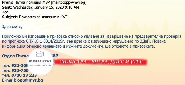 МВР напомня, че такава практика не съществува и всяко едно електронно съобщение следва да бъде разглеждано от получателите му като измамно. Затова – не го отваряйте и директно го изтрийте.