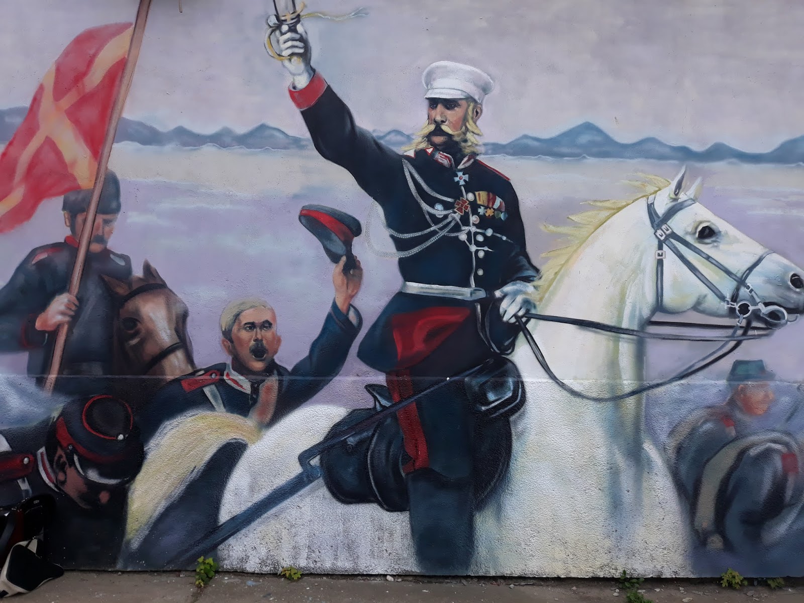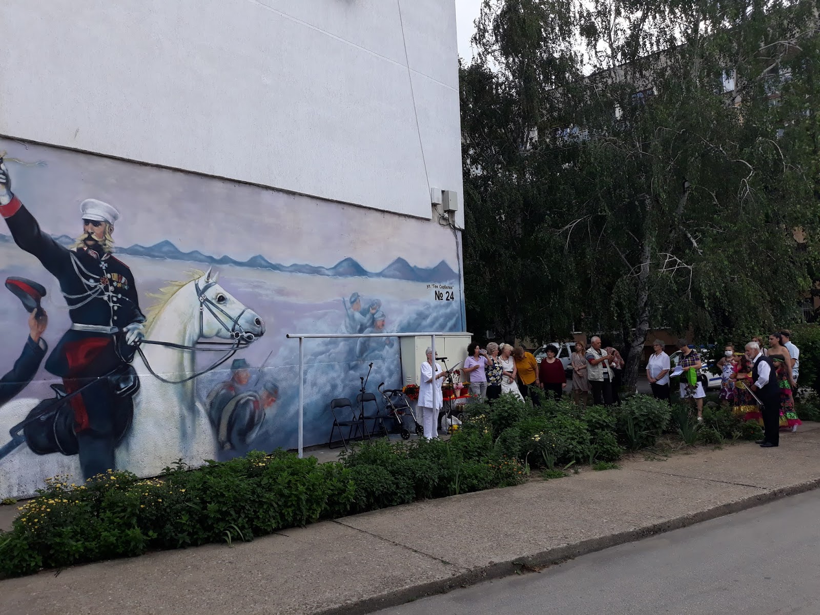 И ето, идва време за „черешката на тортата“ – тържеството за откриване на графитено пано на историческа тематика, в основата на което е славен руски генерал, представител на заслужила фамилия пълководци и доброволци, останали в историята с благото, свършено за България.Пехотен генерал Михаил Д. Скобелев е с голям принос за Освобождението на България от турско робство след войната между Руската и Османската империи през 1877-1878. Именно той е увековечен като Белия генерал, защото е носел бяла униформа и е яздел бял кон. Негов баща е генерал Дмитрий Иванович Скобелев (командир на Кавказката дивизия), а майка му е Олга Николаевна Скобелева – самарянка, ръководила Балканския отдел на Руския червен кръст и развила в България благотворителна дейност. Синът Скобелев е останал в паметта на българския народ като пълководецът, завоювал най-много победи през Освободителната война. С основание сред войниците се носела славата му: „Където е Скобелев, там е победата!“.