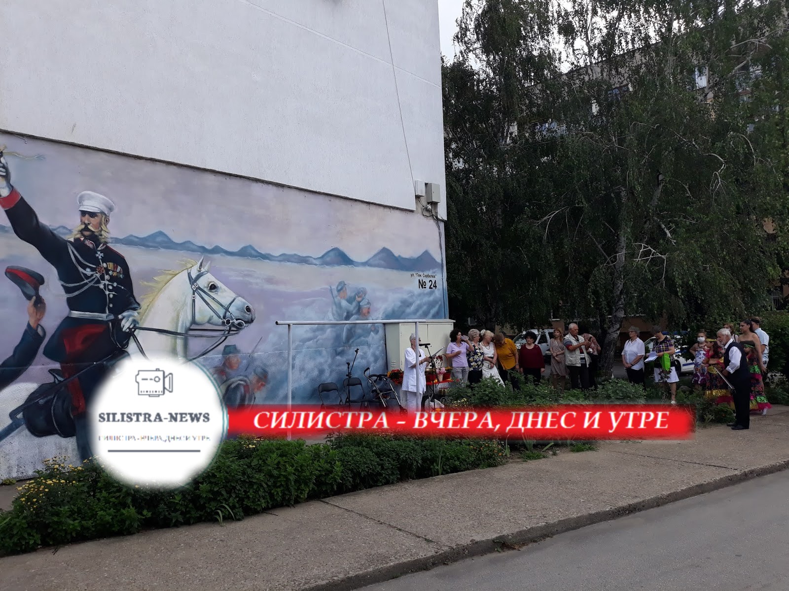 Програмата имаше и музикална част с участието на Трио „Елмина”, група „Интер” и акордеониста Тодор Скорчелиев. Г-жа Велчева благодари на авторите на паното – екип начело с художника Боян Вихренов, който заедно с партньора си в начинанието на Светослав Георгиев осъществява възложението на инициаторите.Благодарение и на други възложители като Драгомир Димитров и Янислав Георгиев, в Силистра има вече реализирани 15 подобни проекти, като в ход са още 4. Всички те дотук имат историческа тематика, но в бъдеще време са възможни и други с различно съдържание. Според Боян, който е трето поколение професионален художник, тези творчески задачи са възможности да бъде упражняван занаятът и да се доусъвършенства с използване на смесена техника и фасадни спрейове.От името на Инициативния комитет бяха връчени поздравления на съмишлениците за създаване на мащабното пано – сред тях бизнесмени, юристи, общественици, както и представители на други житейски сфери. Представен бе и поздравителен адрес от областния управител Ивелин Статев, единствен представител на институция, уважил, макар и задочно, мероприятието, обявено в публичното пространство с модерната дума „флашмоб”.